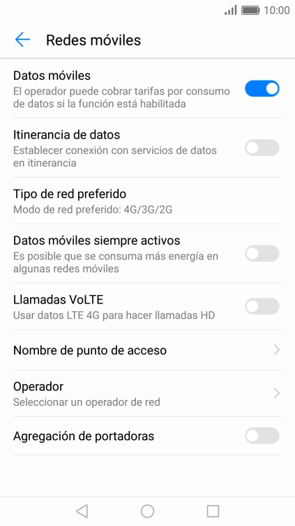 Pulsa en el campo junto a la conexión de datos deseada para activarla.