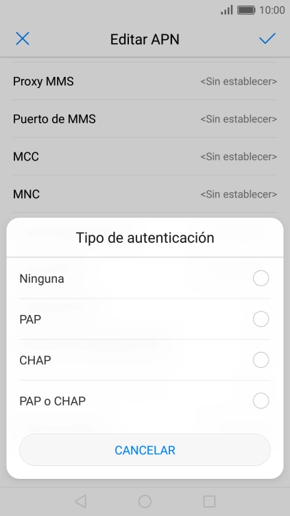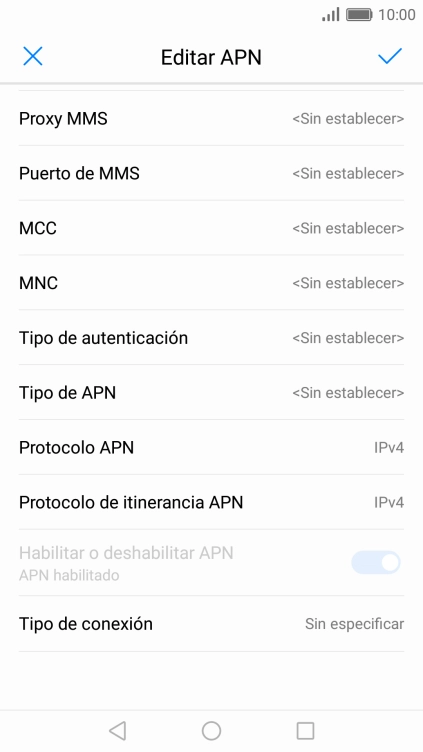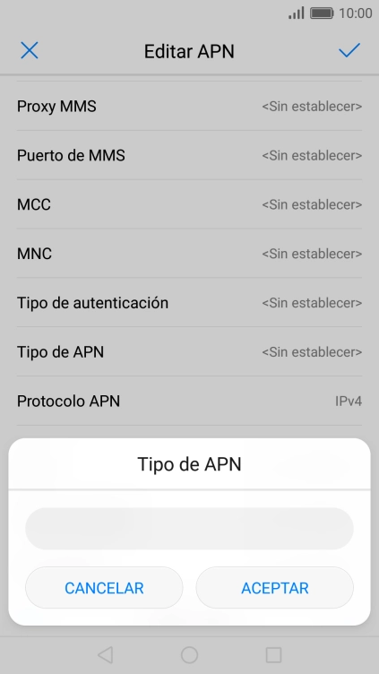 10 Selecciona el tipo de APN