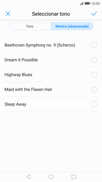 Al encontrar un timbre de llamada de tu gusto, pulsa el icono de aceptar.