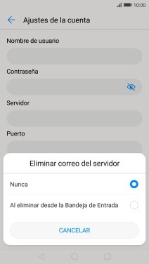 Pulsa Nunca para conservar los correos electrónicos en el servidor cuando los borras del teléfono.