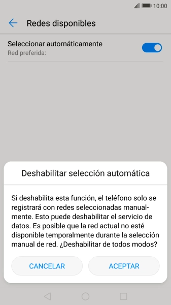 Si quieres seleccionar la red de forma manual, pulsa el indicador para desactivar la función.
