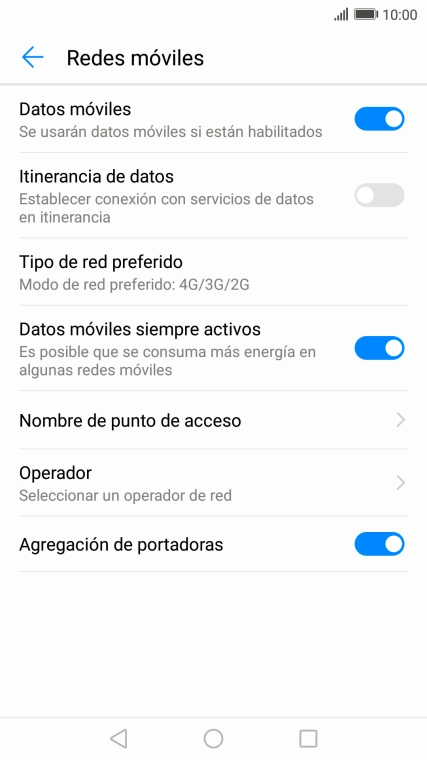 Pulsa en el campo junto a la conexión de datos deseada para activarla.