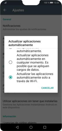Para activar la actualización automática de apps a través de wifi, pulsa Actualizar las aplicaciones automáticamente solo a través de Wi-Fi..