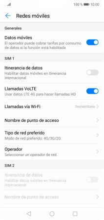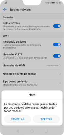 Pulsa el indicador junto a "Itinerancia de datos" para activar o desactivar la función.
