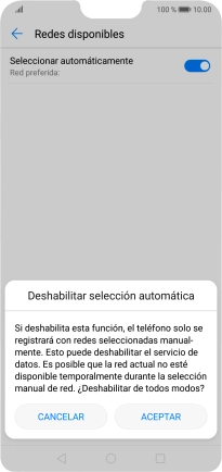 Si quieres seleccionar la red de forma manual, pulsa el indicador junto a "Seleccionar automáticamente" para desactivar la selección automática.