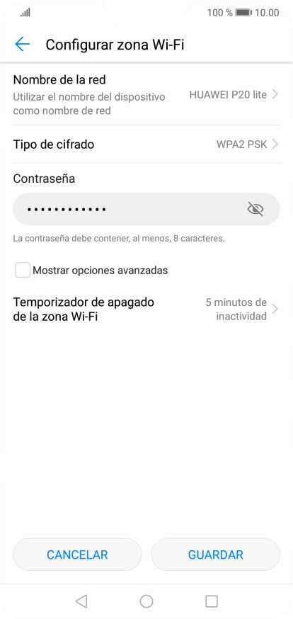 Pulsa WPA2 PSK para proteger la conexión wifi con una contraseña.
