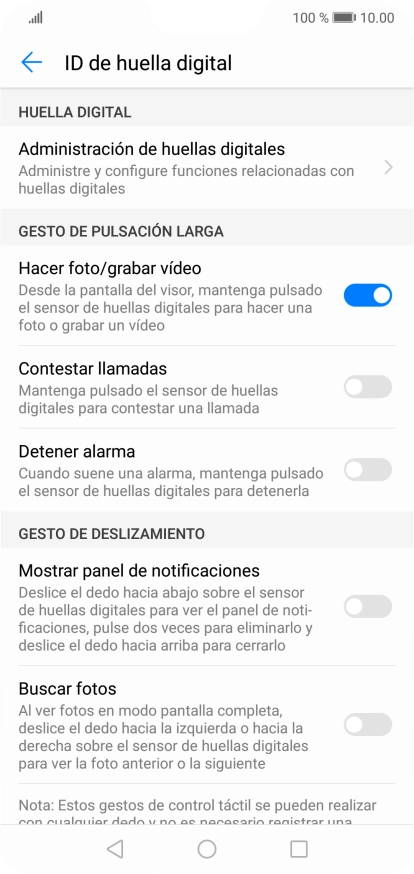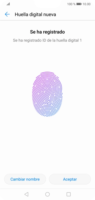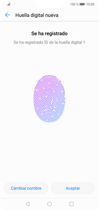 Sigue las indicaciones de la pantalla para crear una huella digital como código de seguridad.