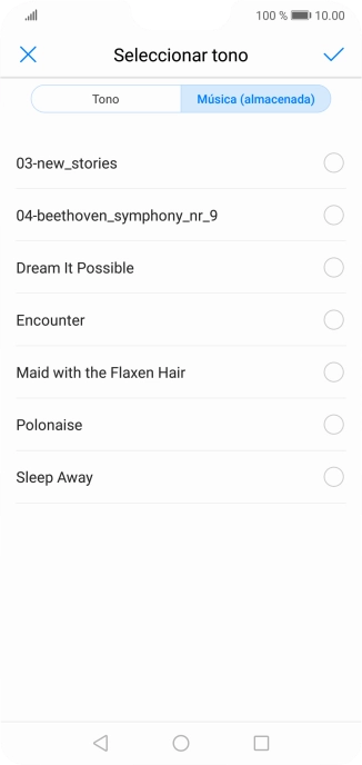 Al encontrar un timbre de llamada de tu gusto, pulsa el icono de aceptar.