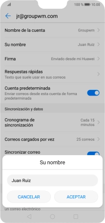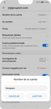 Pulsa Nombre de la cuenta e introduce el nombre de la cuenta de correo electrónico.