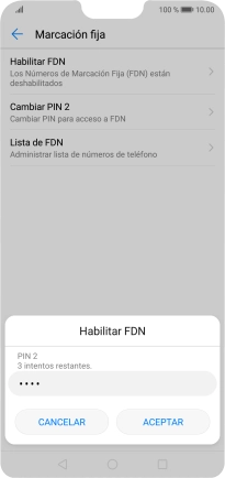 Introduce el código PIN2 y pulsa ACEPTAR.