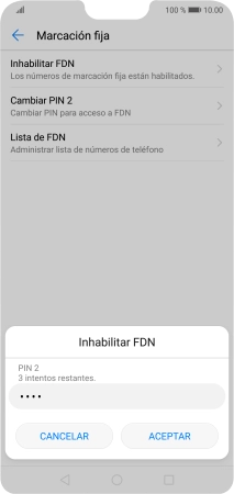 Pulsa Inhabilitar FDN para desactivar la marcación fija.