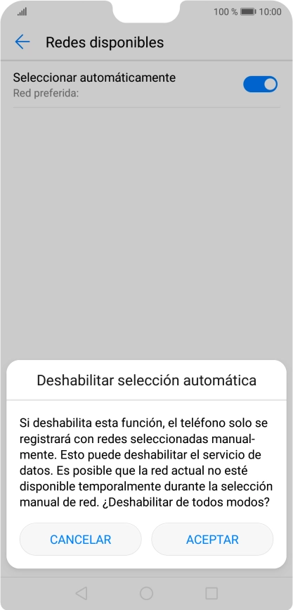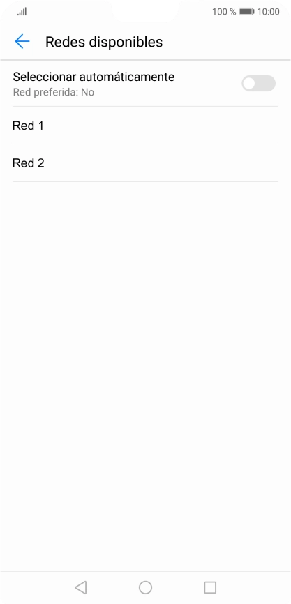 Si quieres seleccionar la red de forma manual, pulsa el indicador junto a "Seleccionar automáticamente" para desactivar la selección automática.