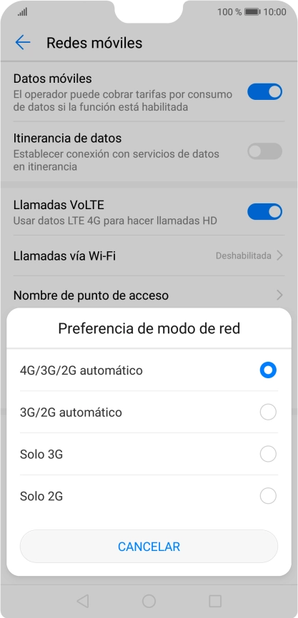 Pulsa Tipo de red preferido.