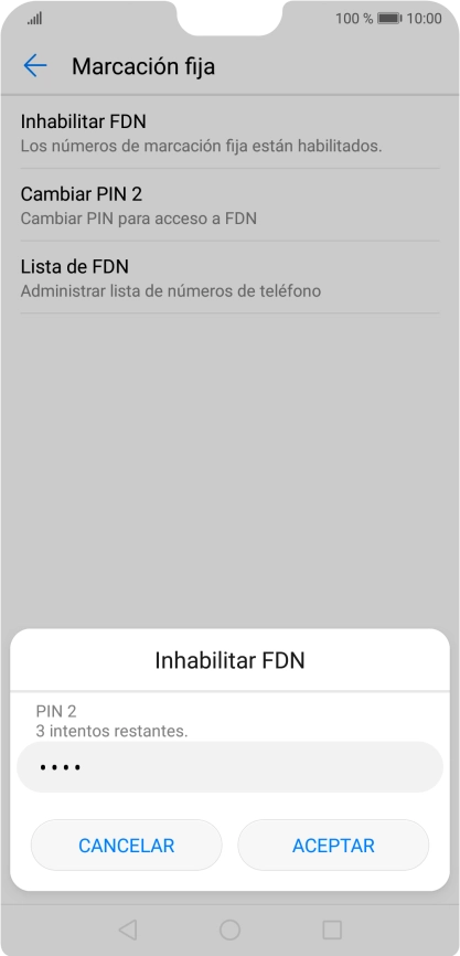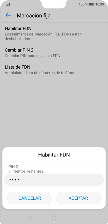 Introduce el código PIN2 y pulsa ACEPTAR.