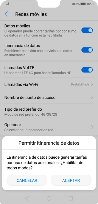 2 Activa o desactiva el roaming de datos