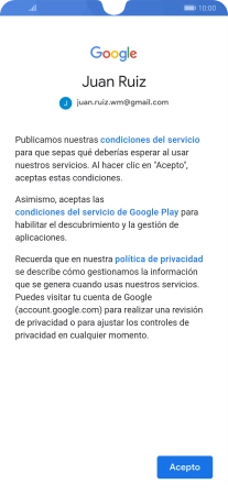 Pulsa Acepto y sigue las indicaciones de la pantalla para seleccionar los ajustes de tu cuenta de Google.