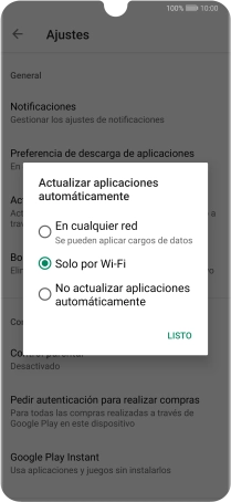 Para activar la actualización automática de apps a través de wifi, pulsa Solo por Wi-Fi.