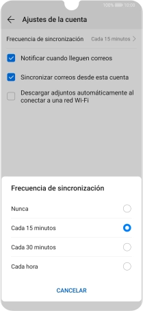 14. Selecciona el ajuste para la descarga de nuevos correos electrónicos