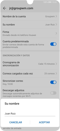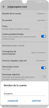 Pulsa Nombre de la cuenta e introduce el nombre de la cuenta de correo electrónico.