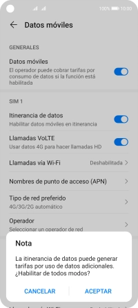 Pulsa el indicador junto a "Itinerancia de datos" bajo la tarjeta SIM deseada para activar o desactivar la función.