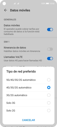 Pulsa Tipo de red preferido bajo la tarjeta SIM deseada.
