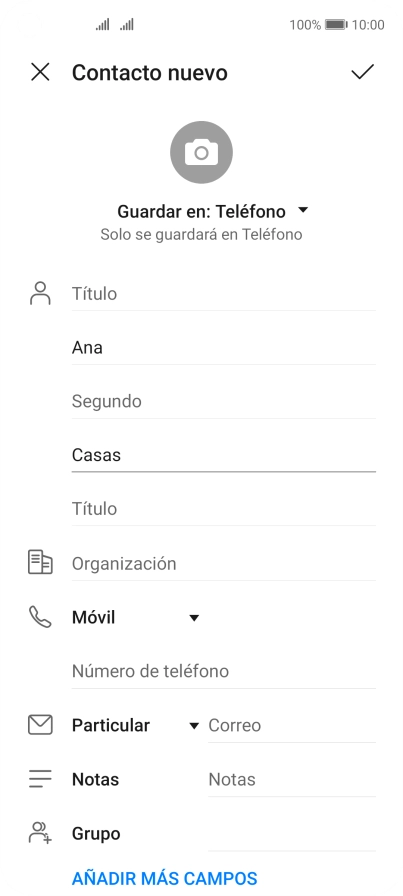 Sigue las indicaciones de la pantalla para añadir más información como, por ejemplo, la dirección de correo electrónico y el timbre de llamada personal.