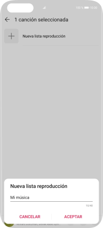 Introduce el nombre deseado de la lista de reproducción y pulsa ACEPTAR.