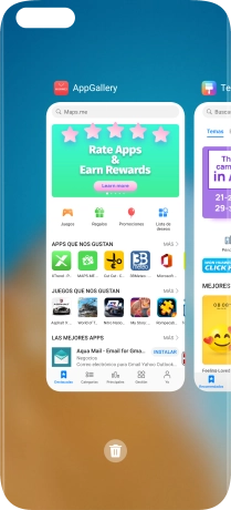 Desliza el dedo hacia arriba desde la parte inferior de la pantalla hasta visualizar la lista de las aplicaciones en ejecución.