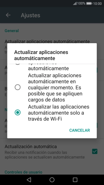 Pulsa Actualizar las aplicaciones automáticamente solo a través de Wi-Fi para activar la función.