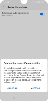 Si quieres seleccionar la red de forma manual, pulsa el indicador junto a "Seleccionar automáticamente" para desactivar la selección automática.