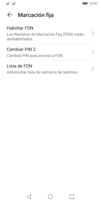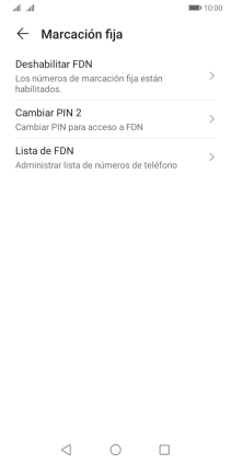 Pulsa Deshabilitar FDN para desactivar la marcación fija.