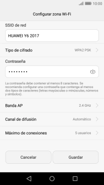 Pulsa WPA2 PSK para proteger la conexión wifi con una contraseña.