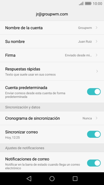 Pulsa Sincronizar correos desde esta cuenta para activar la función.