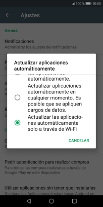 Para activar la actualización automática de apps a través de wifi, pulsa Actualizar las aplicaciones automáticamente solo a través de W-Fi..