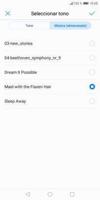 Al encontrar un timbre de llamada de tu gusto, pulsa el icono de aceptar.