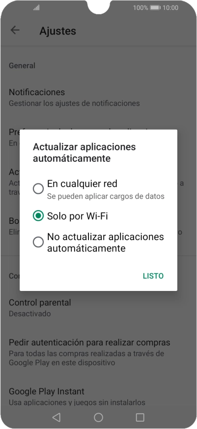 Para activar la actualización automática de apps a través de wifi, pulsa Solo por Wi-Fi.