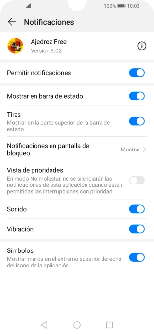 Pulsa el indicador junto a "Permitir notificaciones" para activar o desactivar la función.
