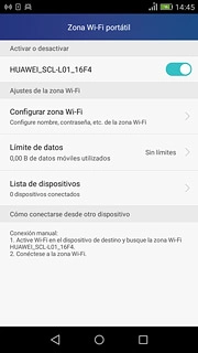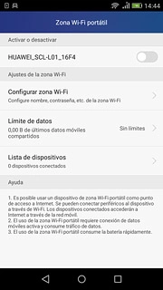 Pulsa el indicador bajo "Zona Wi-Fi portátil" hasta que aparezca en la pantalla que la función está activada.