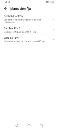 Pulsa Deshabilitar FDN para desactivar la marcación fija.