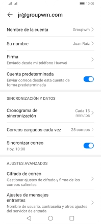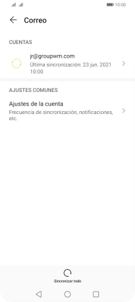 Pulsa Sincronizar ajustes y sigue las indicaciones de la pantalla para activar o desactivar la eliminación de correo electrónico en el servidor.