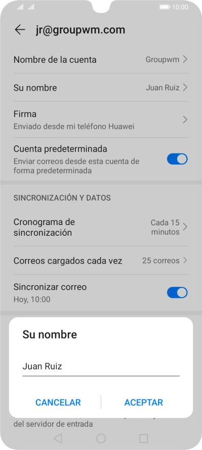 Pulsa en el campo junto a "Sincronizar correos desde esta cuenta" para activar la función.