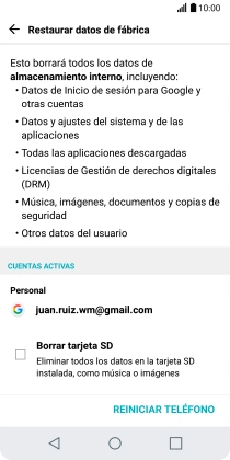 Pulsa REINICIAR TELÉFONO.
