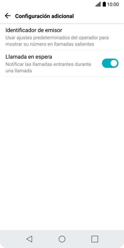 Pulsa el indicador junto a "Llamada en espera" para activar o desactivar la función.