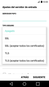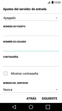 Pulsa Nunca para conservar los correos electrónicos en el servidor cuando los borras del teléfono.