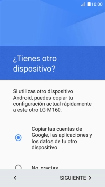 Pulsa Copiar las cuentas de Google, las aplicaciones y los datos de tu otro dispositivo.
