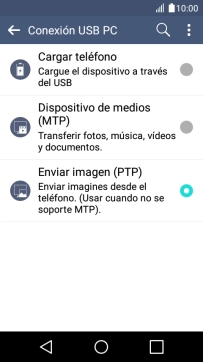 Pulsa Dispositivo de medios (MTP) para activar la función.