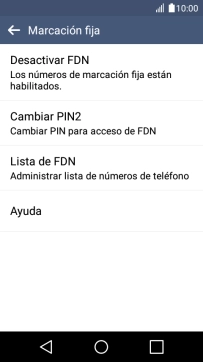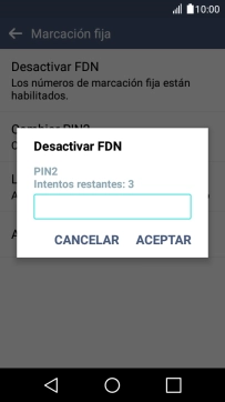 Pulsa Desactivar FDN para desactivar la marcación fija.