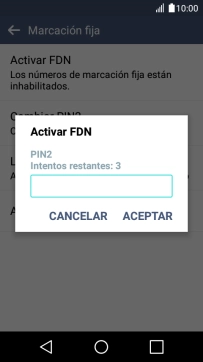 Pulsa Activar FDN para activar la marcación fija.