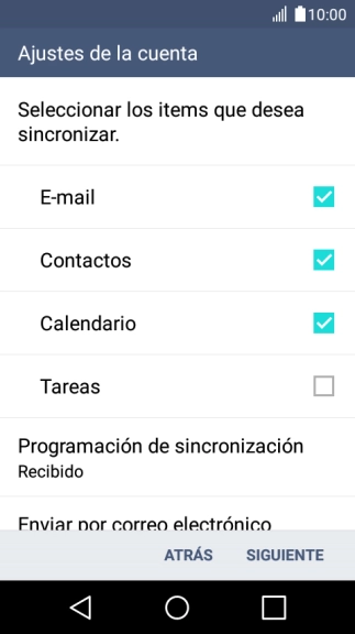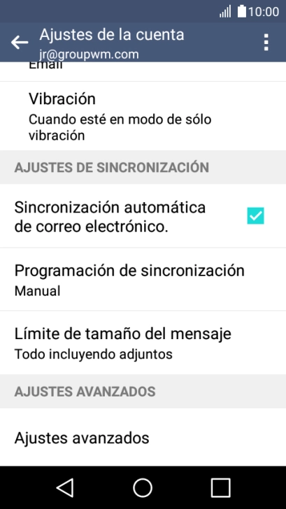 Pulsa Sincronización automática de correo electrónico. para activar la función.