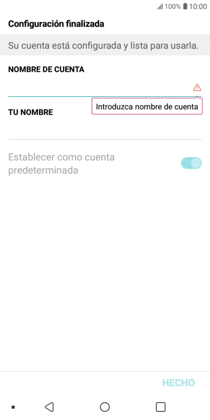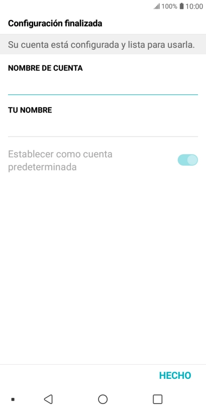 Si aparece en la pantalla esta imagen, tu cuenta de correo electrónico ha sido reconocida y configurada automáticamente. Sigue las indicaciones de la pantalla para introducir más información y terminar la configuración.